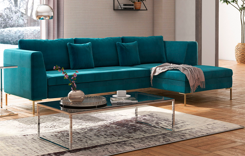 – описание: материал обивки микровелюр, размер спального места 140 х 262 см, размер 82x308x190 см, цвет бирюзовый (avelina 9491).