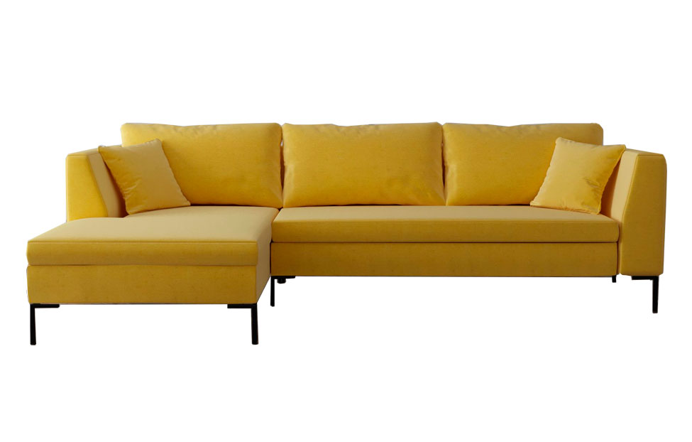 Модульный угловой диван дополнит интерьер в стиле модерн, поп-арт или минимализм. Яркая желтая обивка впишется в окружение голубых или зеленых оттенков, будет гармонировать с коричневыми и красными элементами декора. Если добавить светлый, пастельный фон, то мебель визуально расширит пространство.