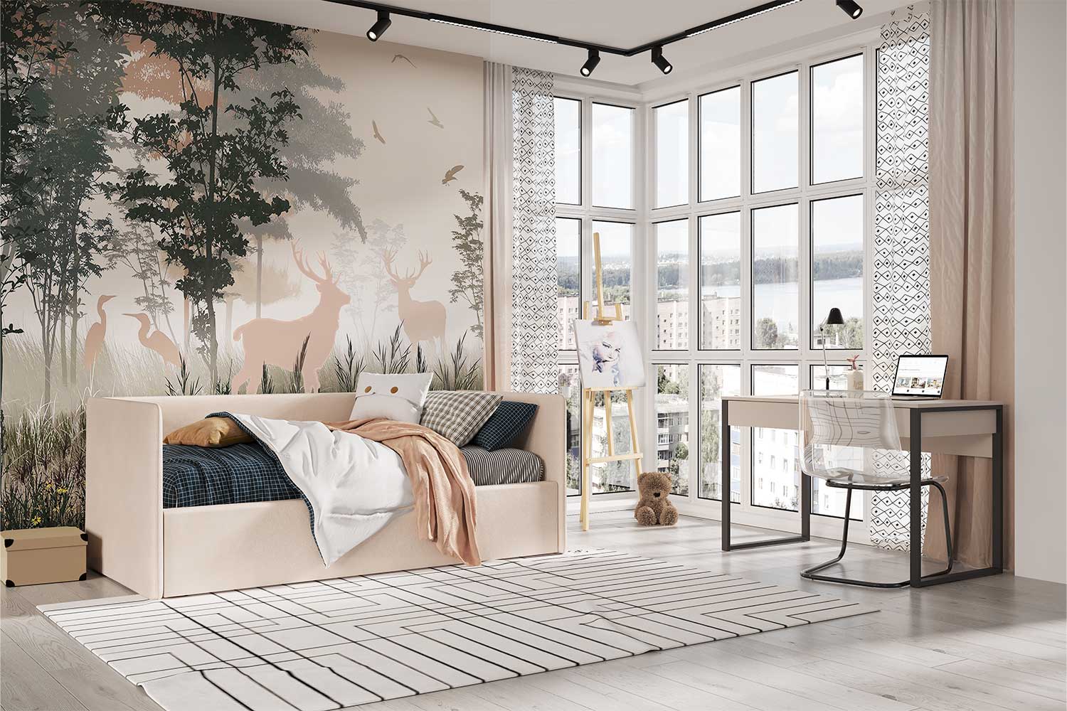– описание: цвет бежевый, материал обивки велюр, размер спального места 90 х 190 см, стиль современный.