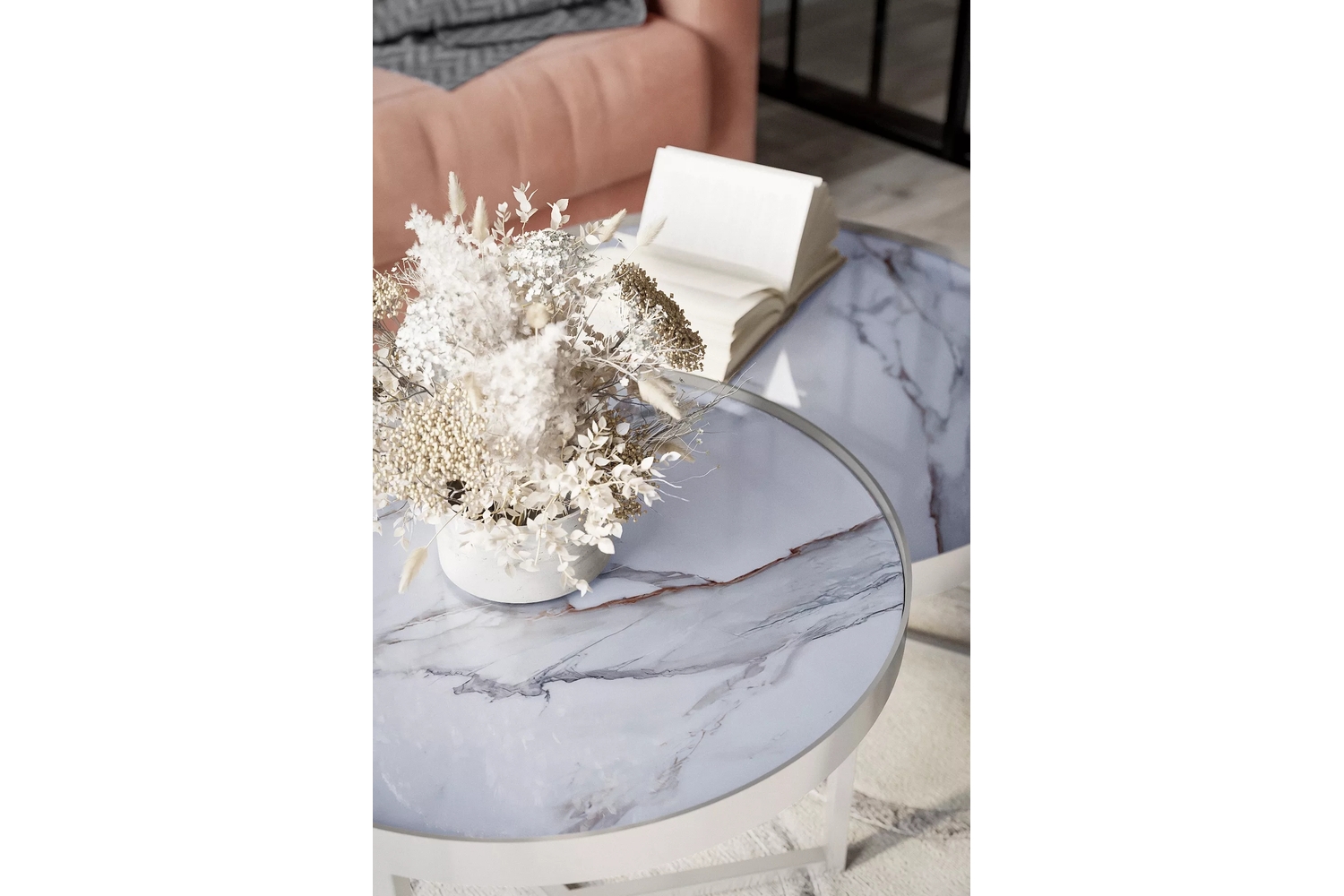 Журнальный столик «Орин» — лаконичная модель в современном стиле с элементами ар-деко и неоклассики, которая благодаря своему универсальному дизайну прекрасно впишется в любой домашний или офисный интерьер и украсит собой диванную зону. Круглая столешница выполнена в стекле с УФ-печатью, которое эффектно преломляет как искусственное, так и естественное освещение, а красота мраморного рисунка мгновенно приковывает взгляд и завораживает, создавая яркий акцент.