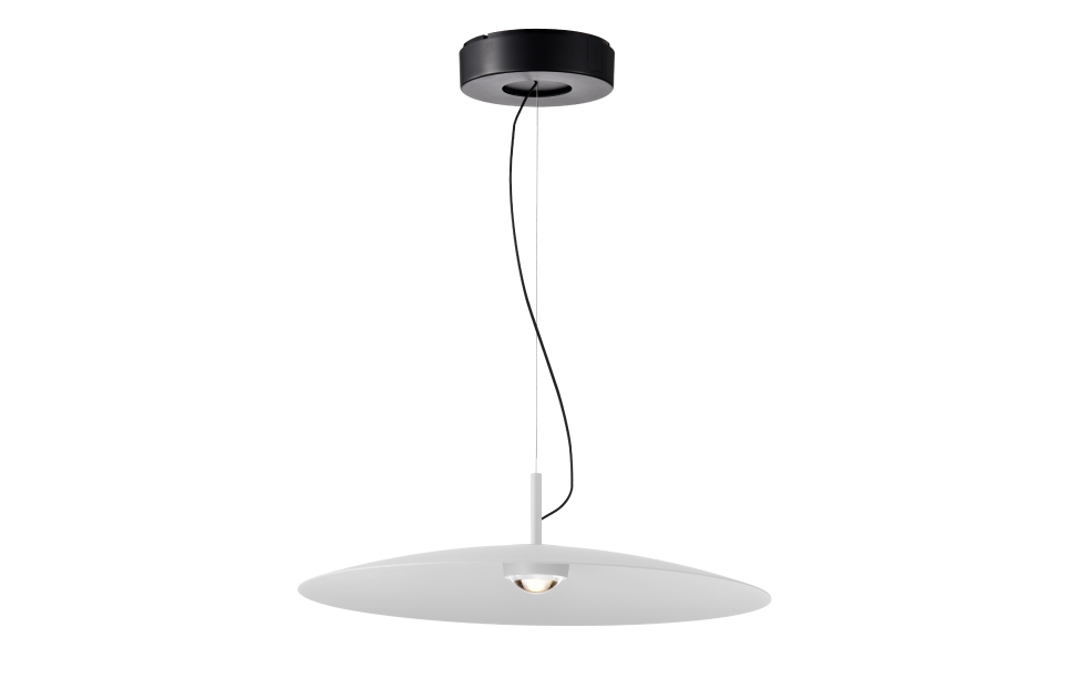 Коллекция подвесов Lars обладает архетипической практически плоской формой купола. Крупный по диаметру алюминиевый плафон имеет лаконичный силуэт и оснащен светодиодным источником света под акриловой лупой. Использование лупы в качестве рассеивателя очень популярно в настоящее время, так как кроме эстетической составляющей, она усиливает и равномерно распределяет поток света. Металлический каркас черного цвета, плафон в белом цвете, диаметром 60 см, алюминиевый плафон имеет лаконичный силуэт и оснащен светодиодным источником света под акриловой лупой, регулируемая высота.