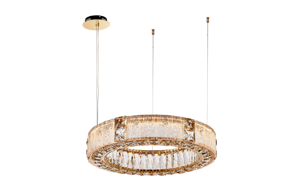 Подвесная светодиодная люстра Favourite Templum 4204-6P с плафоном в виде кольца осветит помещение площадью до 16 кв. м. теплым светом. Осветительный элемент встроен в конструкцию и не требует приобретения дополнительных лампочек. Прибор произведен с использованием материалов: стекло цвета Шампань и металл золотого цвета. Может использоваться для натяжного потолка.