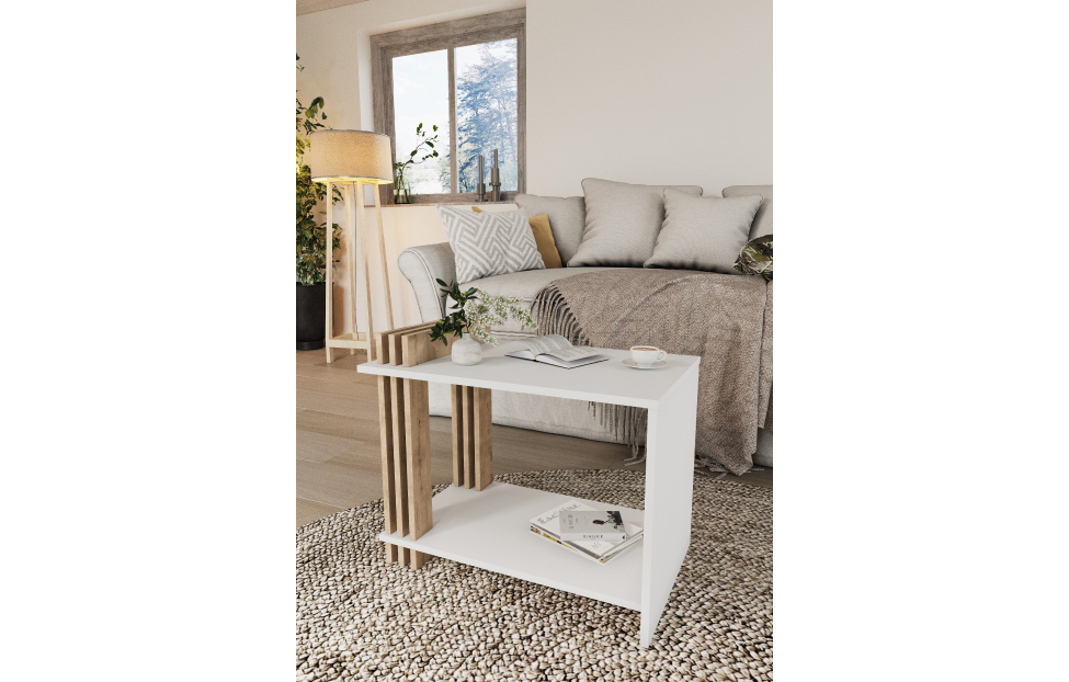 Цена на Стол журнальный Троя / Белый, Дуб Бунрати от производителя , оплата наличным или безналичным расчетом!