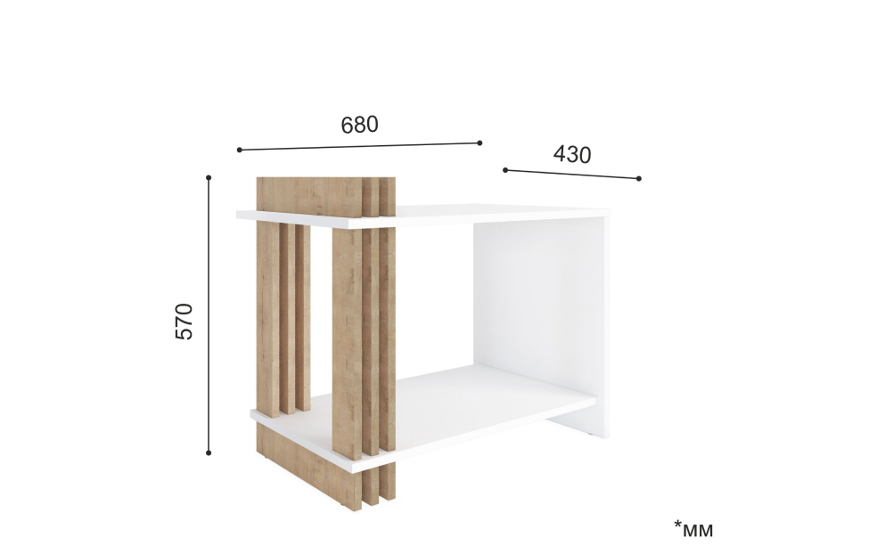 – описание: цвет белый, дуб бунрати, стиль минимализм, скандинавский, современный, назначение для дома, размер 57x68x43 см.