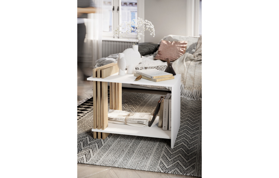 – описание: стиль минимализм, скандинавский, современный, цвет белый, дуб кендал, назначение для дома, размер 57x68x43 см.