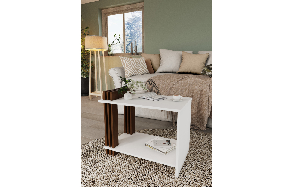 Купить Стол журнальный Троя / Белый, Клен старый в интернет-магазине мебели «Ангстрем»