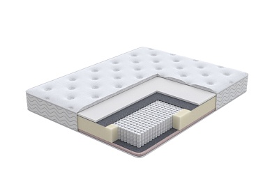 Матрас на основе интеллектуального блока независимых пружин обеспечивает необходимую поддержку каждого участка тела спящего. Матрас двусторонний. Жесткость средняя с обеих сторон. Сочетание современных высококачественных материалов Ортофом и Эко ППУ придает матрасу оптимальную среднюю жесткость. Защитным слоем при взаимодействии с независимыми пружинами служит спандбонд. Чехол матраса выполнен из трикотажной ткани, простеганный на дополнительном слое Ортофом.