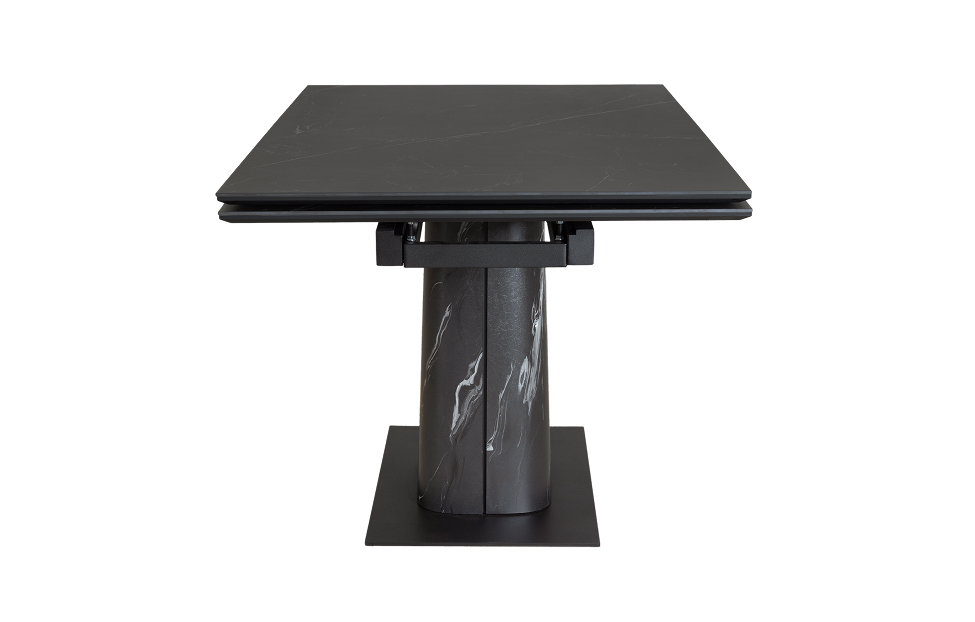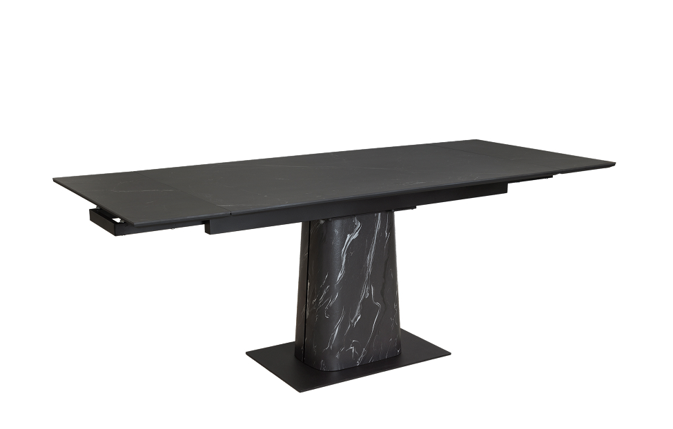 Обеденный стол с двумя торцевыми механизмами подъёма. Столешница МДФ16 в пленке ПВХ + керамика. Опора: основание металл, верх фанера (9L+HPL на выбор).
