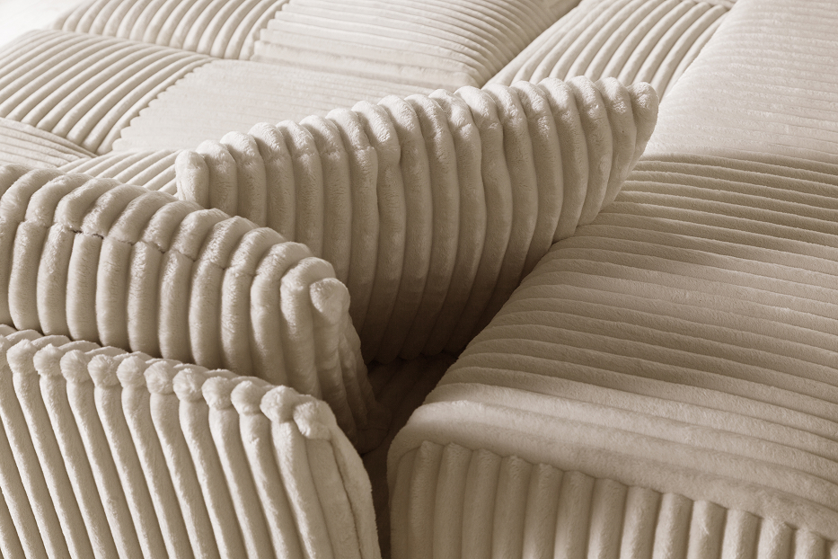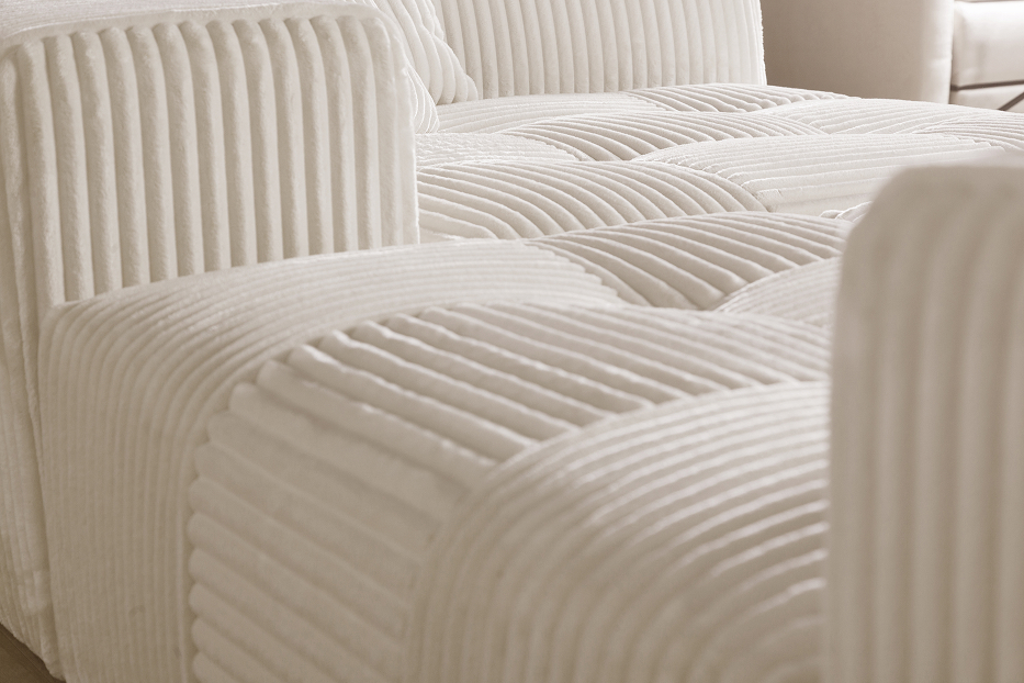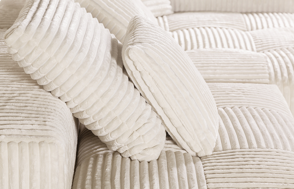 Модульный диван Космо в цвете Молочный (THERAPY 007), обивка велюр. Модули крепятся между собой при помощи инновационных скрытых замков - фиксаторов.