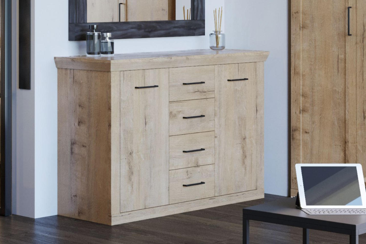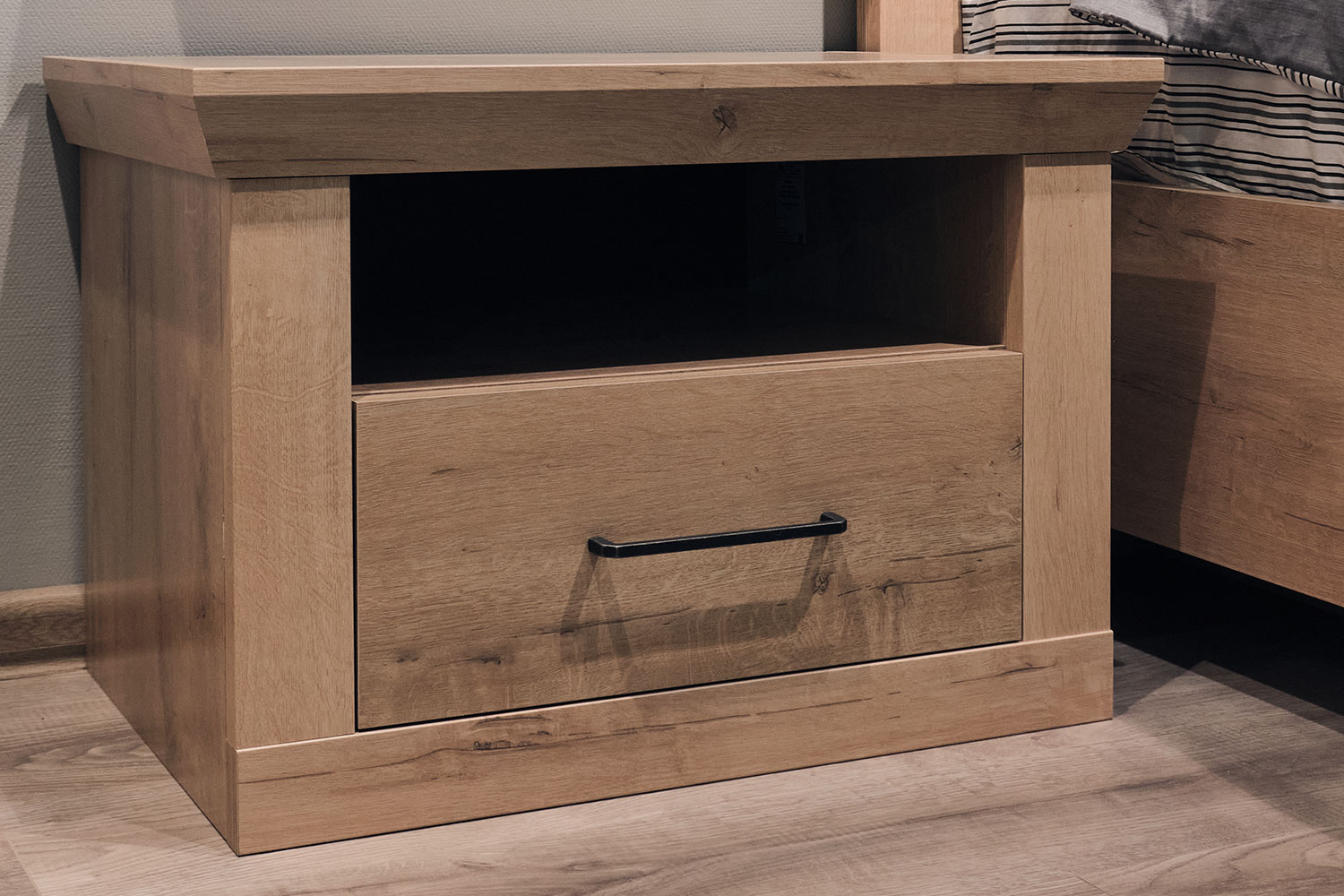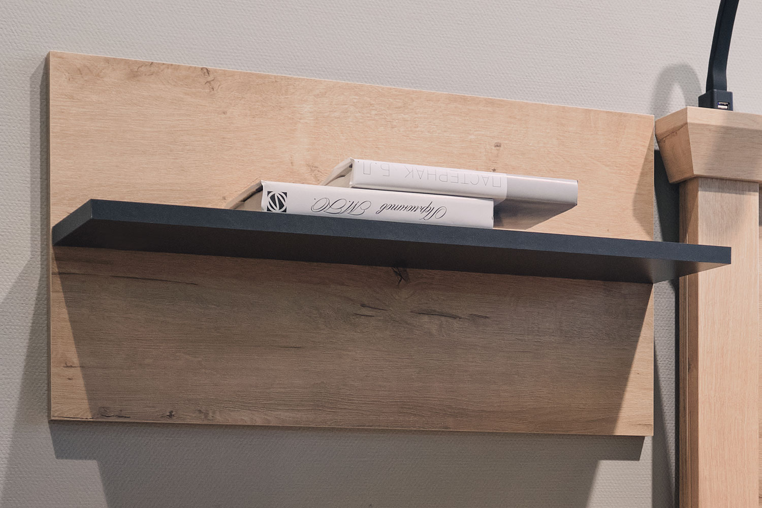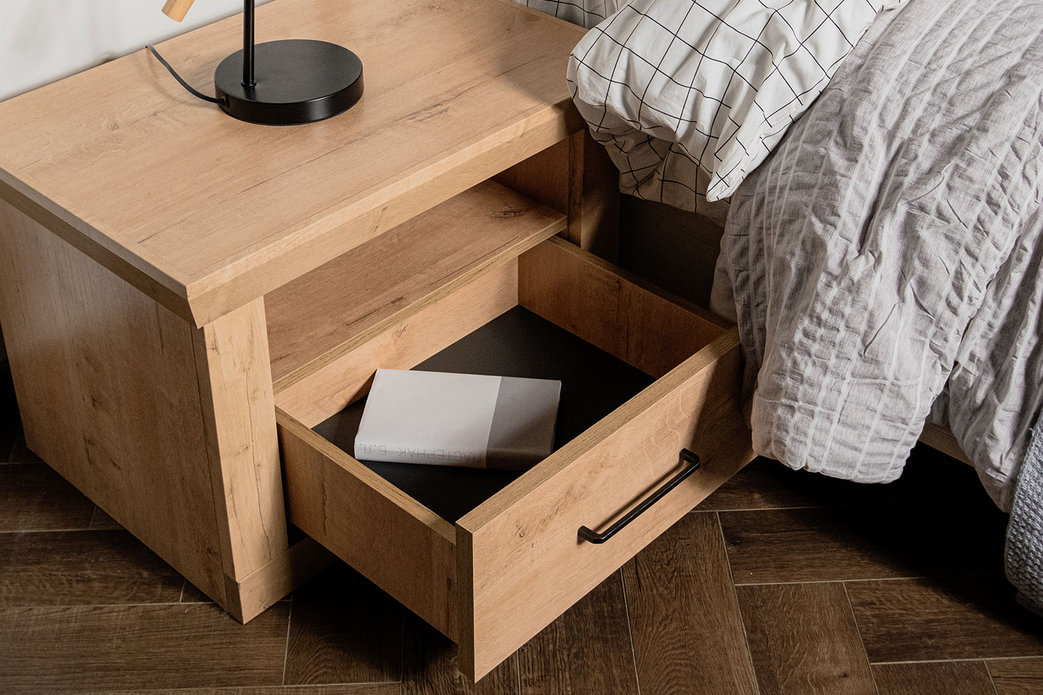Сдержанное колористическое решение коллекции отлично сочетается с любой облицовкой стен и напольным покрытием. Спальня идеально подходит тем, кто ценит современные тенденции и обладает хорошим вкусом. Рамочные конструкции, древесные текстуры, минималистичная фурнитура универсальны и великолепно впишутся в интерьер лофт, фьюжн, эко, сканди. Все ручки окрашены в стильный черный оттенок «античное железо».